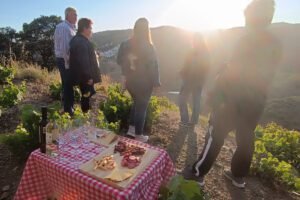 Degustación de vino en un entorno único: al atardecer en el viñedo o en un lagar pasero (según temporada).